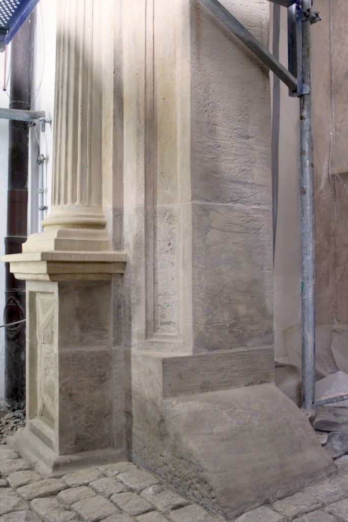 - Reinigung der Steinoberflächen im Wirbelstrahl- und Mikropartikelstrahlverfahren